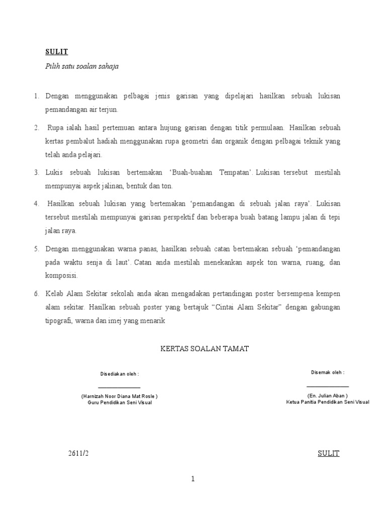 Contoh Soalan Seni Visual Spm Kertas 1 Persoalan O